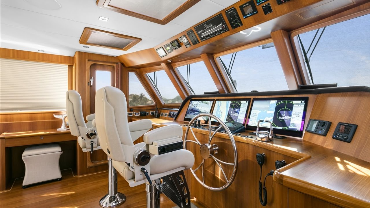 X ClassLa alta demanda del modelo skylounge ha aumentado considerablemente debido a las grandes ventajas que brinda una estación de timón superior con temperatura controlada además de la protección contra los elementos durante el agua azul y los cruceros de larga distancia. El diseño del 860 Deluxbridge de Outer Reef Yachts cuenta con 4 espaciosos camarotes para propietarios e invitados, 2 camarotes para la tripulación en popa con cabezales, salón y cocina. Debido a que la estación de timón superior elimina la necesidad de una estación de dirección en la cubierta principal, el espacio de la cocina debajo se incrementa enormemente, creando una cocina campestre expansiva para cocinar, cenar y entretenerse. Las espaciosas habitaciones hacen eco de la sensación de los yates de más de 100 pies, y la amplia área del skylounge ofrece un área de comedor, entretenimiento y oficina adicional, privada y protegida, opciones de espacio que son valiosas durante viajes prolongados. Las actualizaciones incluyen CAT C-18 de 1140 hp, propulsores hidráulicos de proa y popa de 55 hp, estabilizadores Trac Zero Speed, generadores gemelos Northern Lights de 38KW y un sistema electrónico y AV muy extenso. Al igual que con todos los yates Outer Reef de la colección, el Outer Reef 860 Deluxbridge define nuevos estándares con su tecnología de vanguardia, construcción robusta y atractivo contemporáneo.